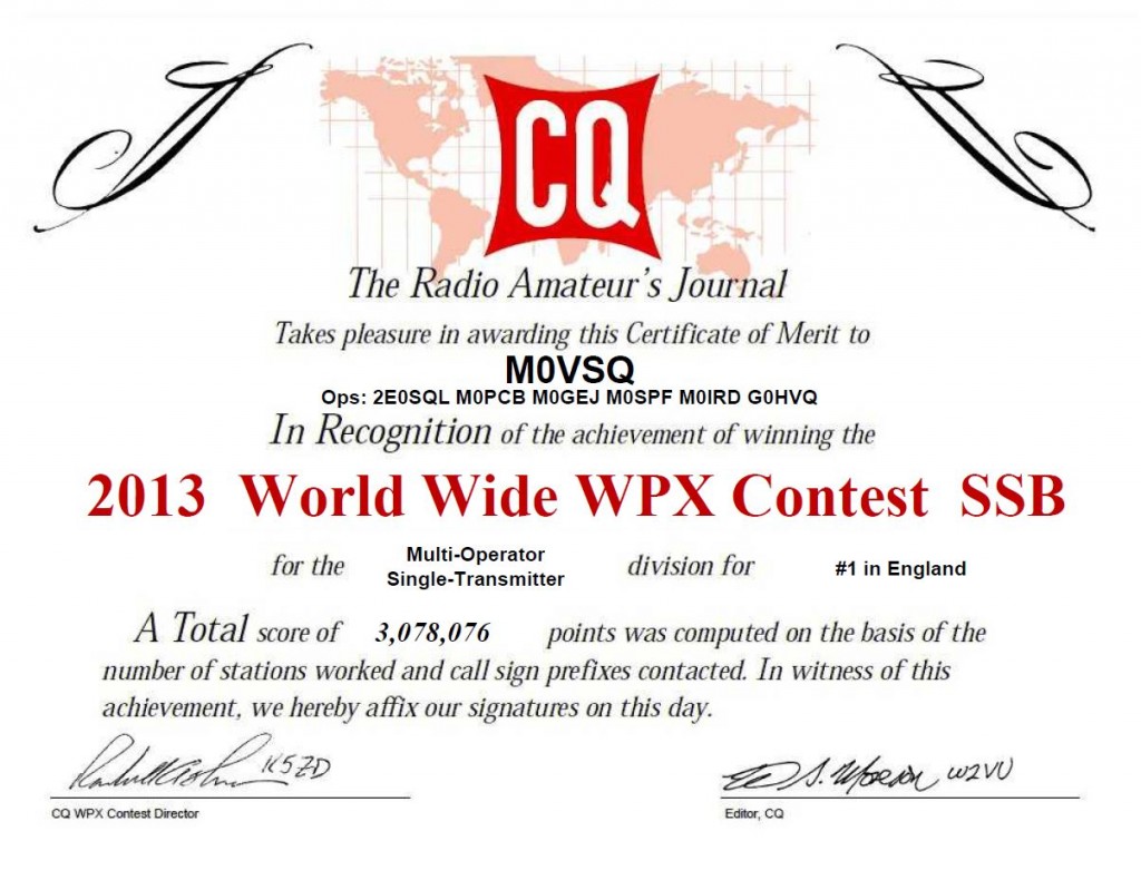 In March 2013 the group entered its first major contest and secured a first place in England as a result. We entered the Multi-Single category which was all band and high power. We had an ELecraft K3, driving an Expert 1k-FA to 400W. Antennas were a Jaybeam TB3 at 35 feet, a Cushcraft MA4080 and a 160m dipole.
